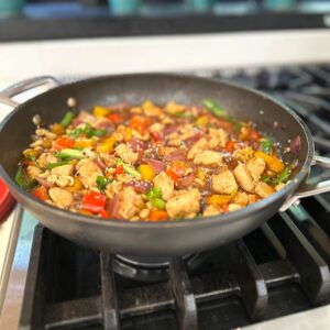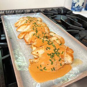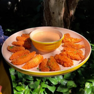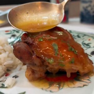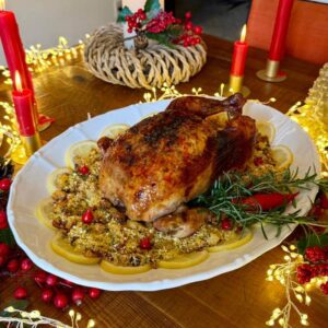 Sobrecoxas assadas acompanhadas de milho verde com queijo