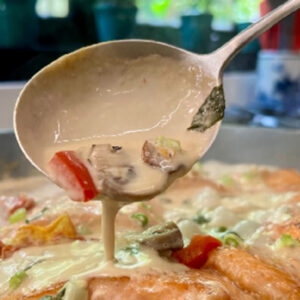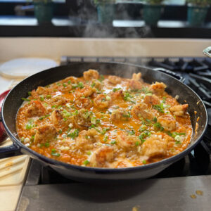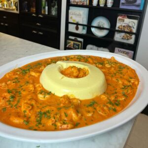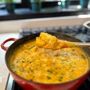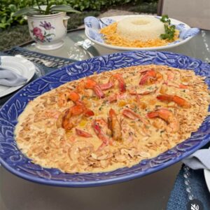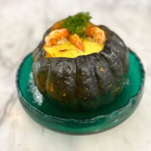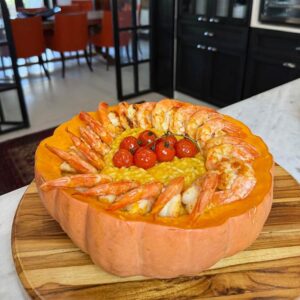 Camarão na Abóbora recheada com Creme de Gorgonzola