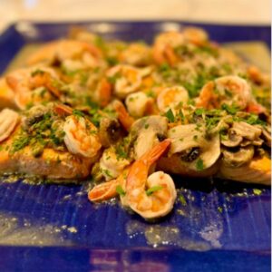Lagostinhas Grelhadas com Gnocchi de Mandioca