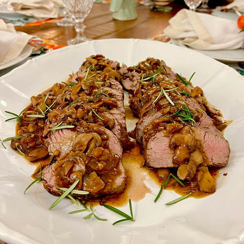 🔹 Fatiar o rosbife, colocar as fatias na travessa de servir e regar com o molho fervente.