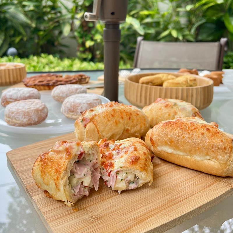 🔹 Assar os pães, retirar o miolo e preencher bem as cavidades com a mistura.