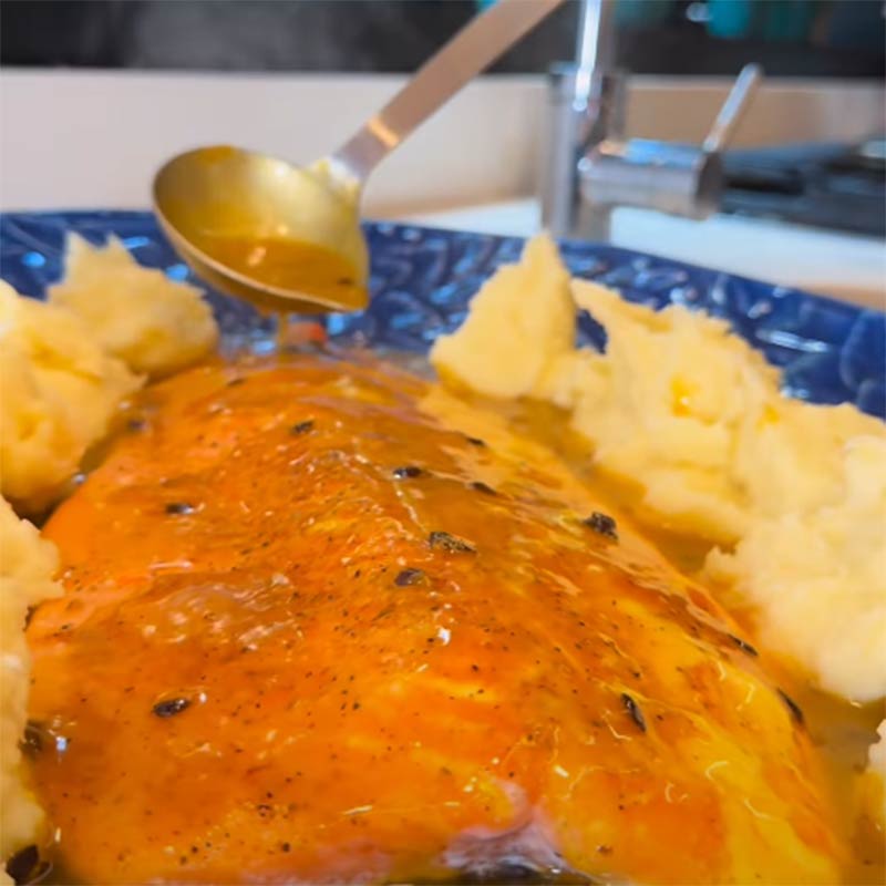 🔹 Temperar o filé de salmão com sal e lemon pepper. Colocar em uma assadeira, regar com um fio de azeite e assar a 180C graus por 15 a 20 minutos. Retirar da assadeira, passar para o prato de servir e regar com o molho.