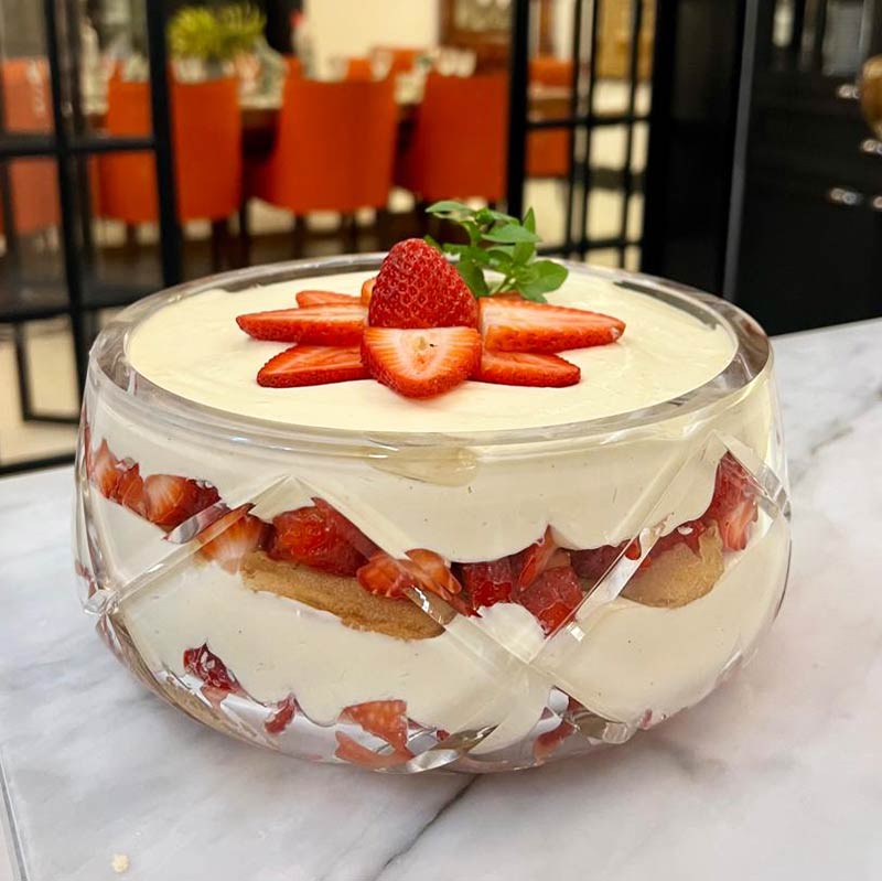 🔹 Decorar com morangos fatiados e uma folha de hortelã. Gelar até servir (no máximo 3 horas para melhor resultado).