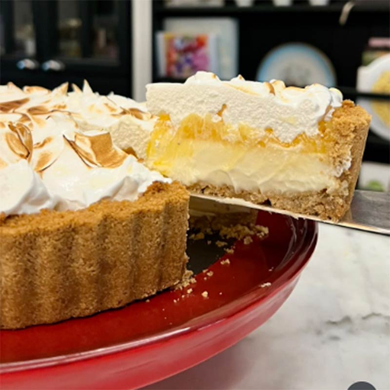 🔹 Espalhar o merengue por cima da torta e passar o maçarico. Servir gelada.