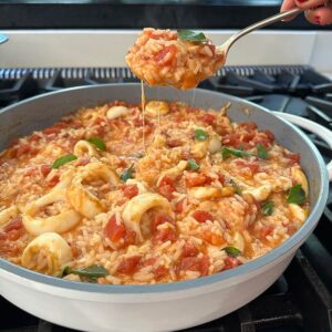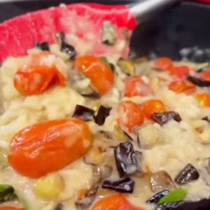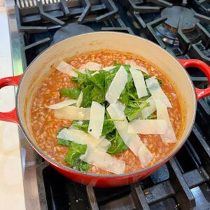 Risoto de Tomatinhos, Rúcula e Mussarela de Búfala
